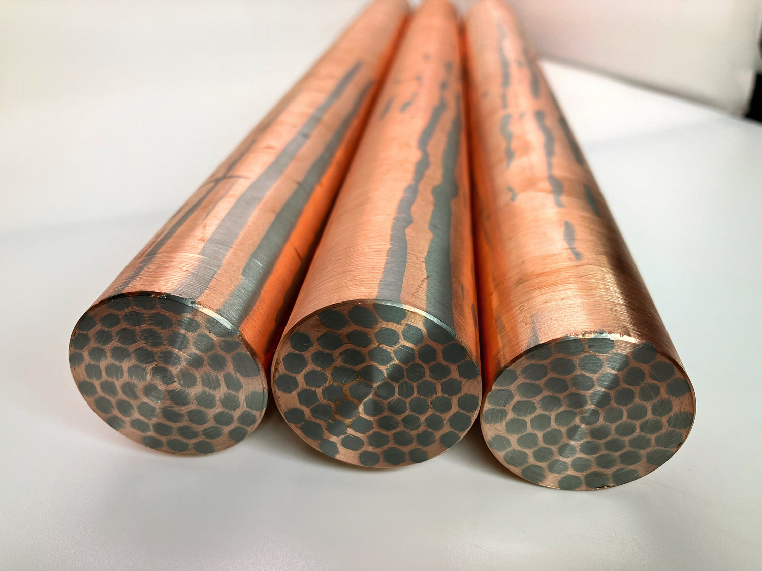 As shown in the picture, the black regions are Titanium and Niobium alloy wires. The surrounding region (the red color) is copper. The superconductor rods are the cut-off during making suoerconductor cables. So it is very hard to get a same pattern items. On the other hand, little company can make superconductor cables, so the stable supply of superconductor rods are not available. Superconductors have a density very close to copper. Approximately 8.9 g/cm^3.
