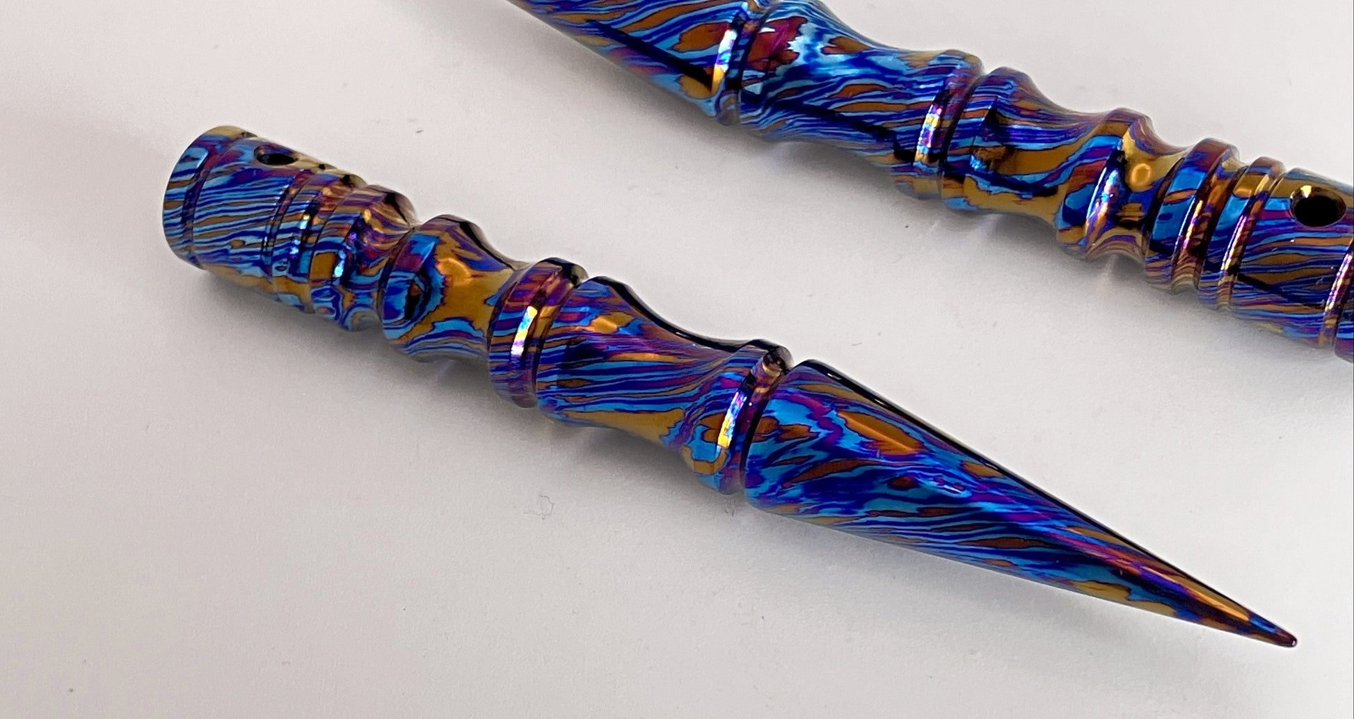 Mokume TiDamascus Pendant - Tapered Spike, Three Alloys Twisted Pattern, Polished Finish